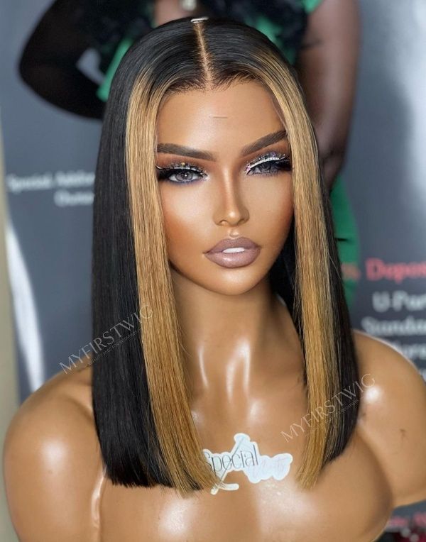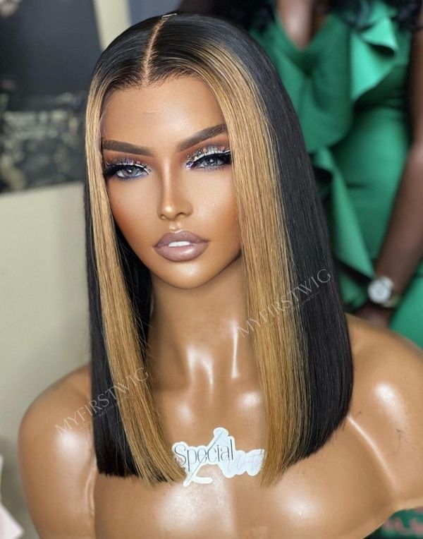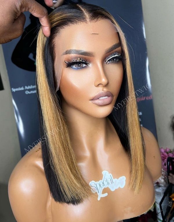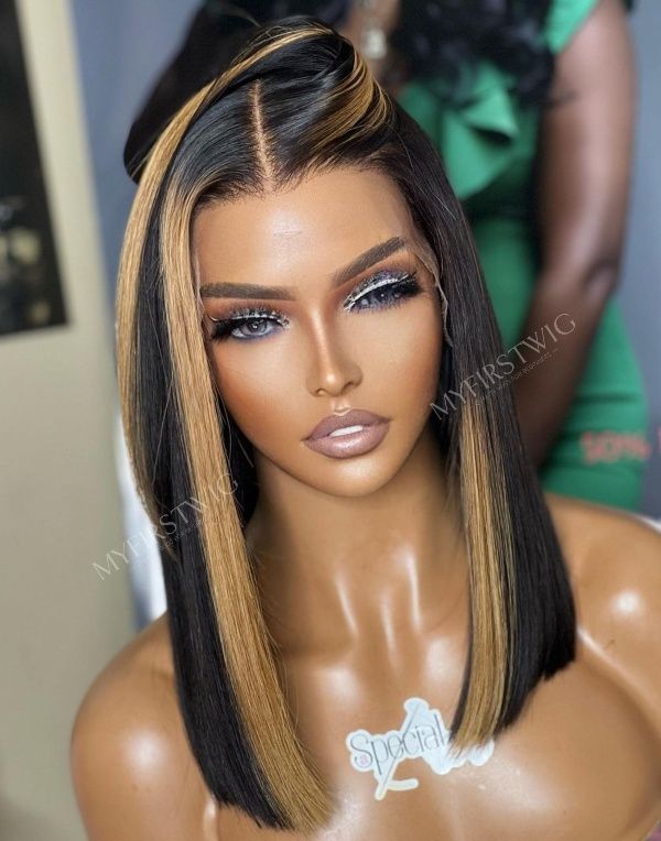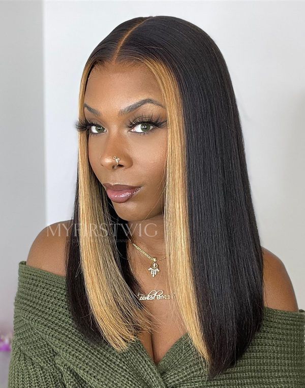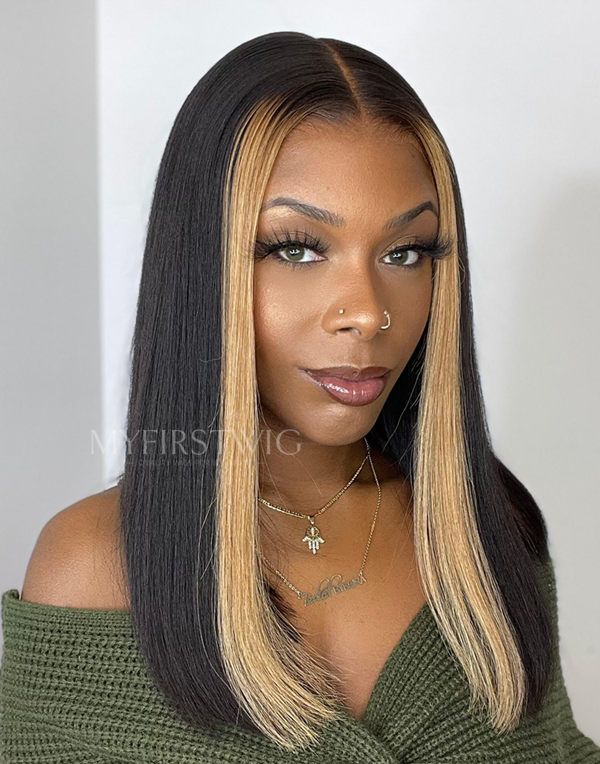 Perruque Lace Wig - 13x6 Perruque Blonde Longueur Épaule Skunk Stripe - SPE001