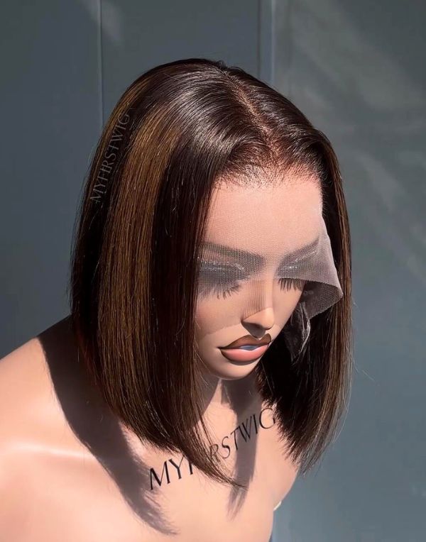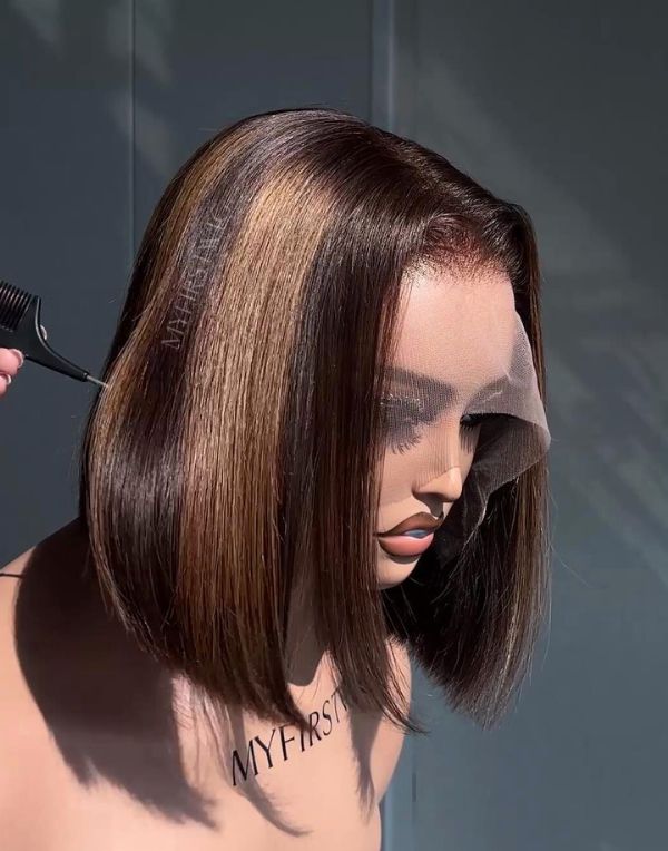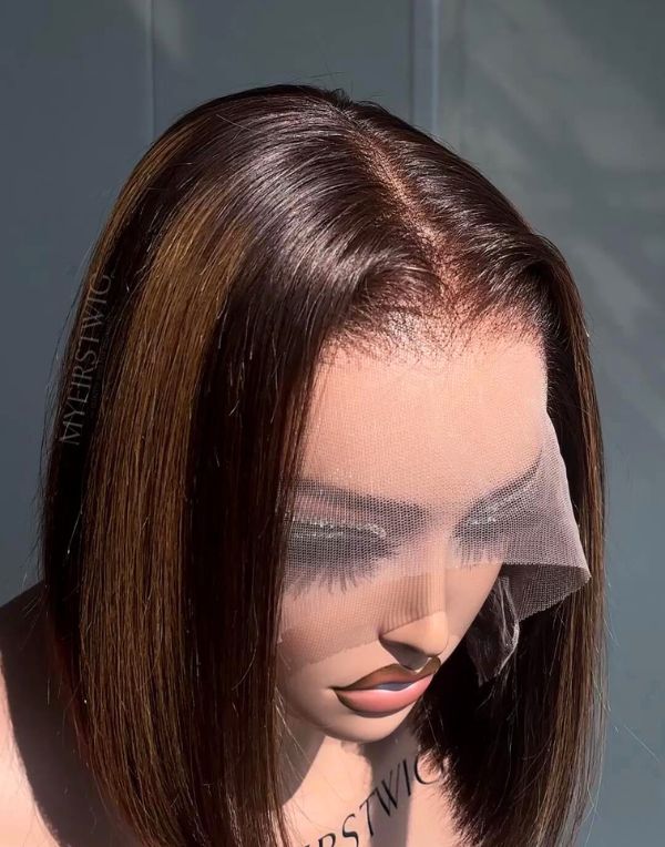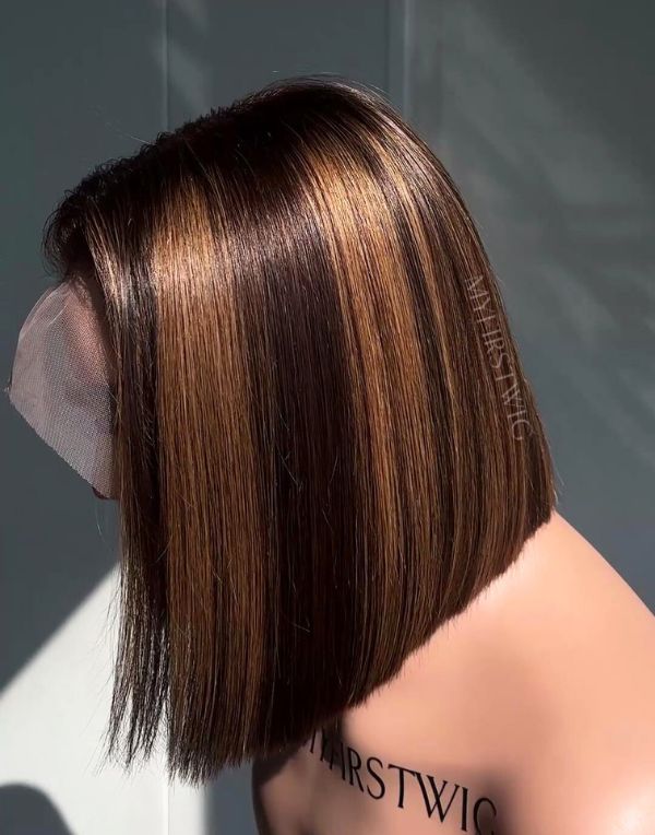 Perruque Lace Wig - 13x6 Perruque Bob brune à reflets - April016