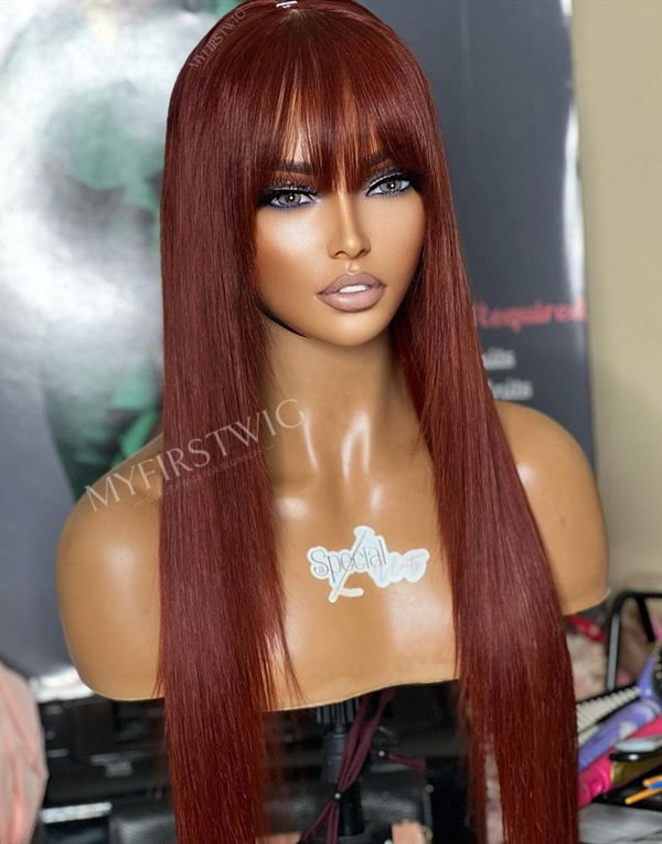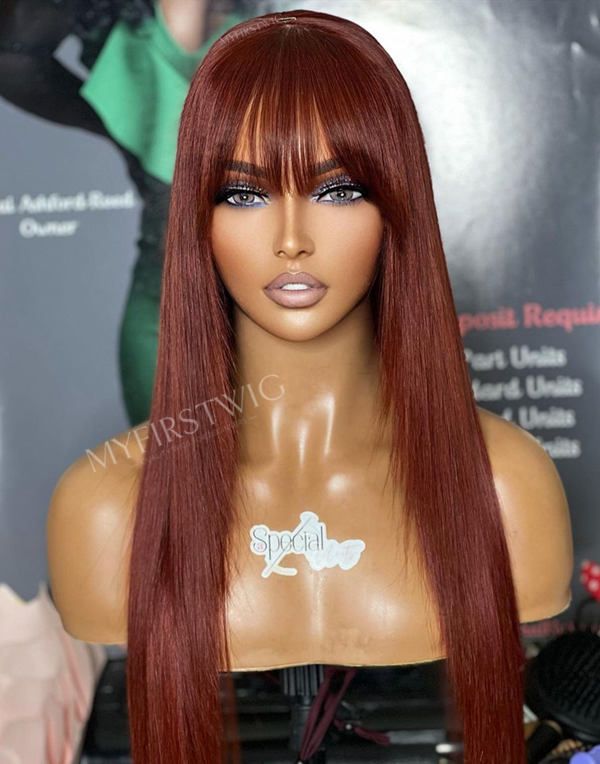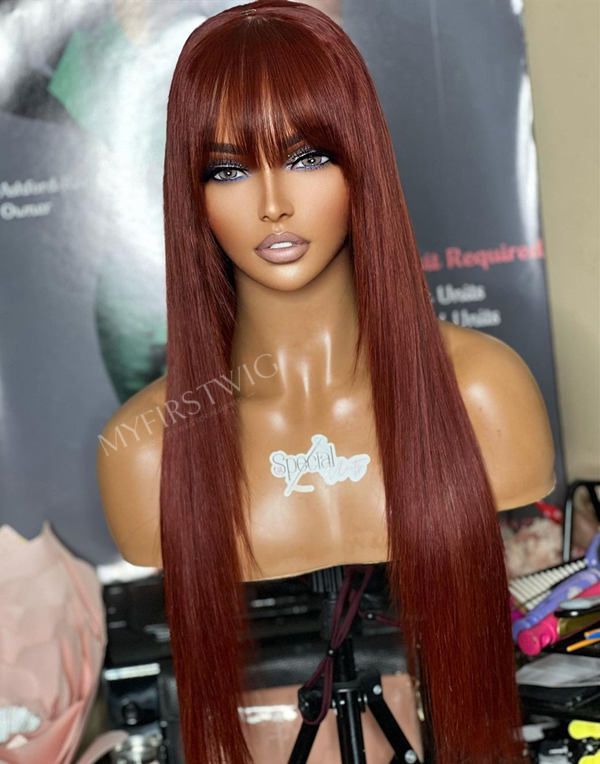 Perruque Lace Wig - 13x6 Perruque couleur bordeaux avec une frange - SPE049