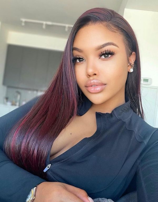 Perruque Lace Wig - 13x6 Perruque droite bordeaux à reflets - LFS013