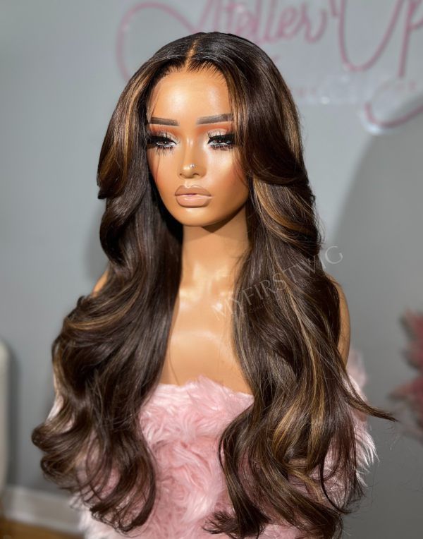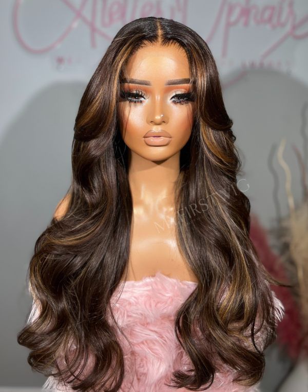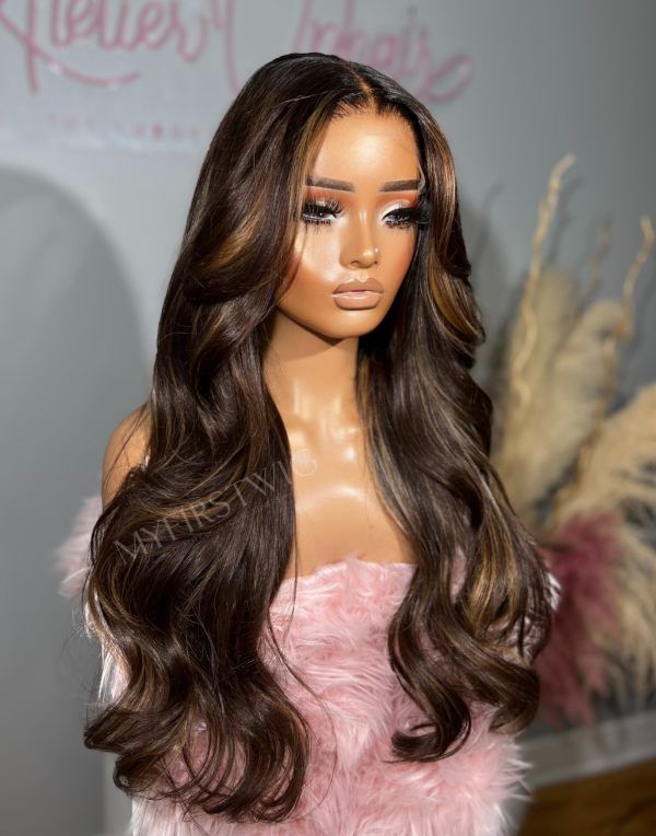 Perruque Lace Wig - 13x6 Perruque longue ondulée surligner le marron - OPH080