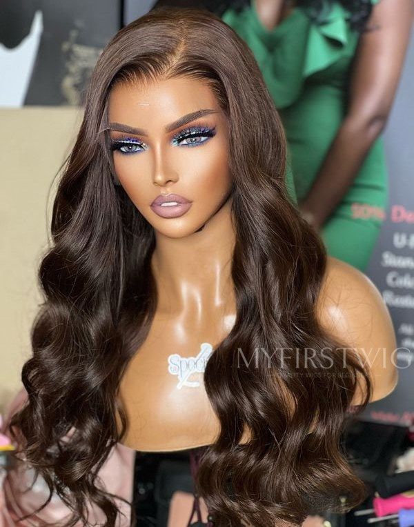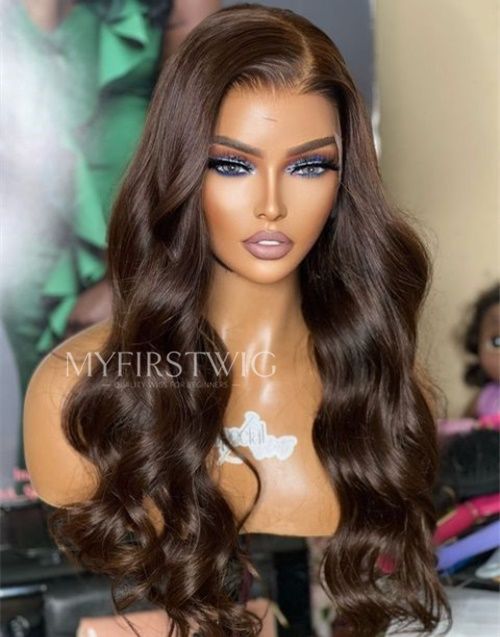 Perruque Lace Wig - 13x6 Perruque ondulée marron foncé - SPE022