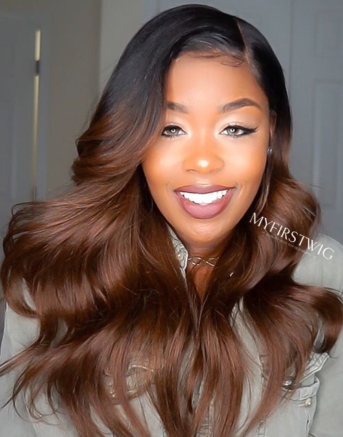 Perruque Lace Wig - 13x6 Perruque ondulée marron ombré - LFW073