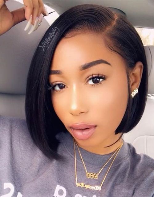 Perruque sans colle 5x5 - Perruque Bob courte avec raie latérale - CLB004