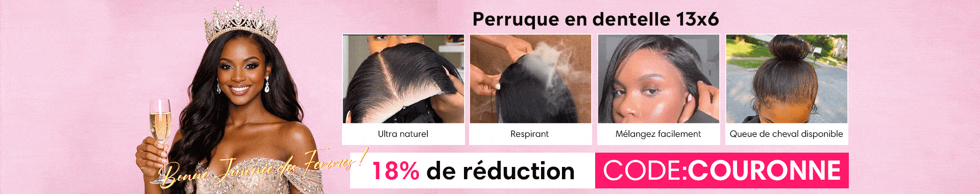 √Dentelle invisible √Délié pré-épilé √Noeuds légèrement blanchis √Sangle réglable et bande élastique ajoutées