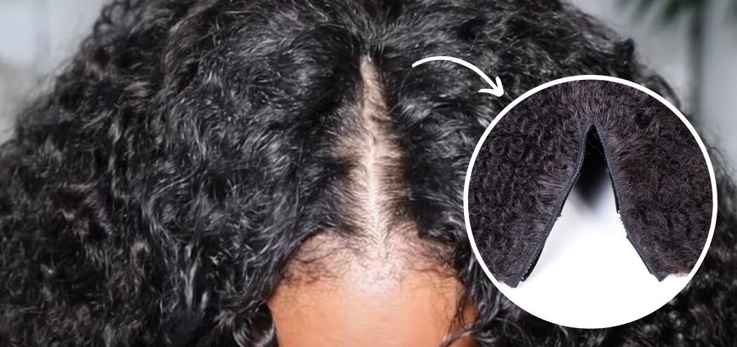 La forme en V unique est créée pour imiter l'apparence d'un cuir chevelu naturel, donnant l'apparence de cheveux poussant directement à partir du cuir chevelu. La séparation en forme de V sur le dessus de la perruque permet également à l'air de circuler.